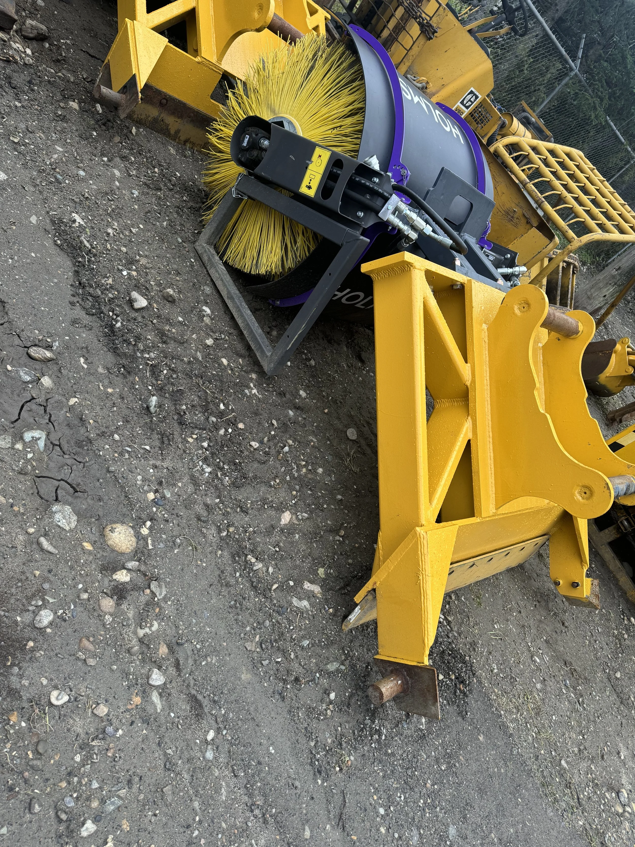 The Holms Brush is a heavy-duty maintenance attachment designed for efficient removal of debris, ballast, and ice from rail crossings and tracks, ensuring safe and clear operations.